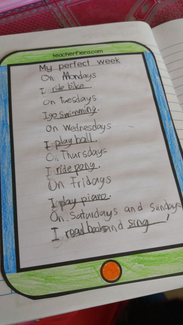 • Students write their own poem based on the structure of the poem read by their teacher and stated in the worksheet by changing the activities they would like to do based on the days of the week